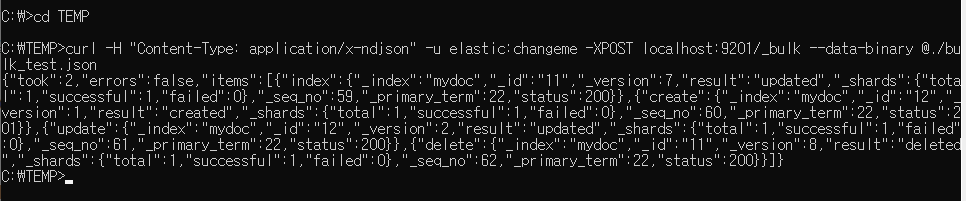 curl -H "Content-Type: application/x-ndjson" -u elastic:changeme -XPOST localhost:9201/_bulk --data-binary @./bulk_test.json